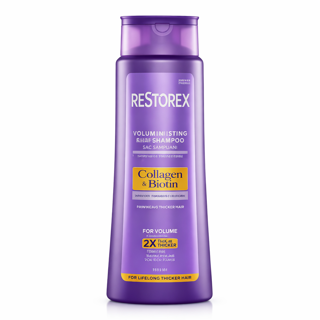 Experience the transformative power of collagen and biotin with Restorex Volumizing Shampoo! Your journey to fuller, healthier hair starts today.